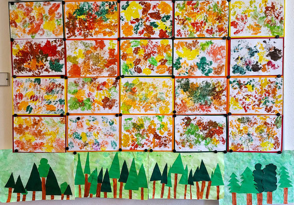 Die neuesten Kunstwerke sind bunte Blätter auf dem Hintergrund und lassen uns auf die Herbstferien einstimmen.